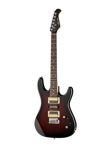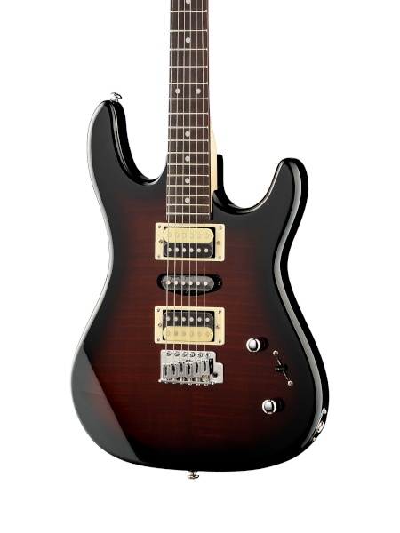 Два звукоснимателя хамбакер, один сингл. Бридж - тремоло, 6 болтов.