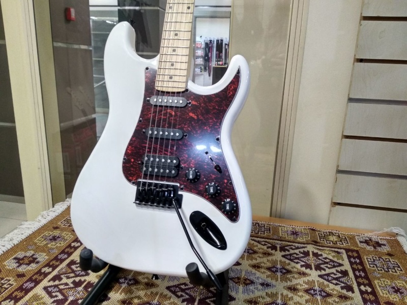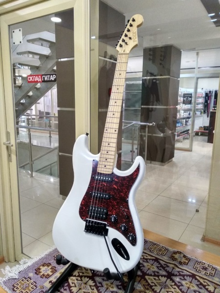 - Глянцевое лаковое покрытие белого цвета, надёжный кленовый гриф болченого типа, такой тип крепления хоть и уменьшает сустейн, но положительно влияет на яркость звука инструмента.