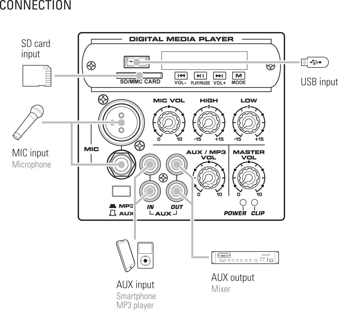 Встроенный Mp3 плеер, слот для SD карты, USB порт, Bluetooth