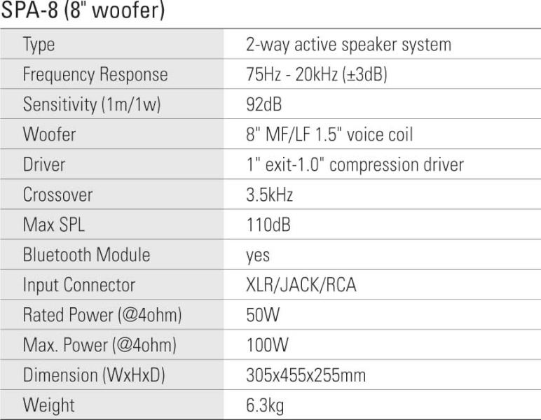 - НЧ драйвер: динамик 8" MF / LF; катушка 1.5".