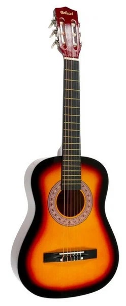 Классическая гитара Belucci BC3405 SB – прочный корпус и мягкие струны. Небольшая и удобная классическая гитара Belucci BC3405 SB способна покорить еще до первого касания струн. Ее стильный корпус, выполненный в традиционной форме, сделан из натуральной древесины, что обеспечивает великолепное звучание инструмента. Специальная обработка грифа и деки гарантирует повышенную прочность и устойчивость поверхности к царапинам и потертостям. Мягкий звук гитаре обеспечивают шесть нейлоновых струн. Каждая из них обладает особым чистым звучанием, а особенность материала, из которого они сделаны, исключает дискомфорт для пальцев во время игры. Инструмент великолепно подойдет для игры в домашних условиях или в компании друзей.