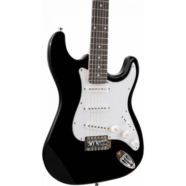Эта доступная копия знаменитой электрогитары Fender Stratocaster прекрасно подойдет для игры в различных нетяжелых стилях вроде рока, блюза или фанка.