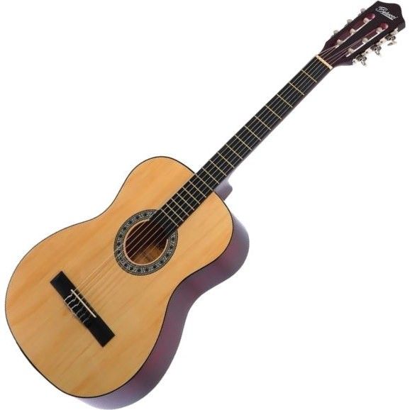 Классическая гитара – идеальное сочетание удобства, надежности и качества. Корпус инструмента сделан из высококачественной древесины (липа) со сбалансированным звучанием. Игру на инструменте облегчают шесть мягких нейлоновых струн, кленовый гриф заужен, классические колки помогут в точной настройке, а порожки вместе с бриджем создают оптимальную высоту струн для превосходной интонации. Эта гитара идеально подойдет для людей невысокого роста и с небольшой длиной пальцев. Данный размер 7/8 (38 дюймов) хорошо подойдёт для людей среднего роста.