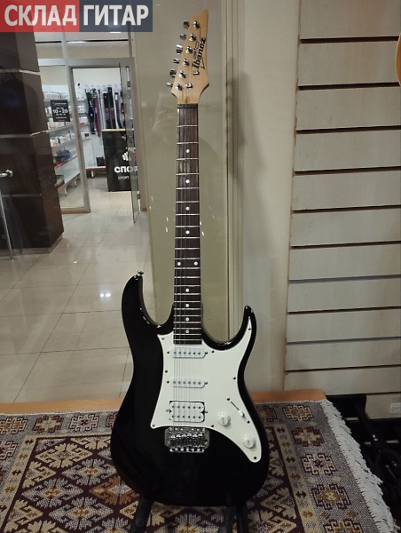 Корпус инструмента выполнен из тополя. Гриф GRX из клена. Накладка на гриф - из ятобы. Радиус накладки 305 миллиметров. Мензура 25,5 дюйма (648 миллиметров). На грифе 22 лада Medium, инкрустированных белыми точками. Звук формируется тремя пассивными звукоснимателями Infinity с керамическими магнитами. Это два сингла, у грифа и в средней позиции, плюс хамбакер у бриджа. Переключатель пятипозиционный. Настройка осуществляется регуляторами громкости и тембра. Бридж тремоло собственного производства Ibanez T106, он обеспечивает удобство при игре и стабильность строя. Модель выпускается в двух вариантах цветового исполнения. Представленная гитара стильного черного цвета с блестящей хромированной фурнитурой.