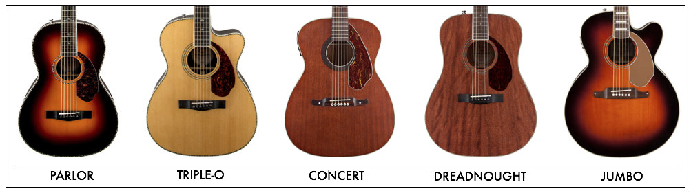 - orchestra — корпус меньшего размера, который создает сбалансированный, ровный и мягкий, но достаточно тихий звук. Отлично подходит для записи музыки в студии и исполнения гитарных соло;