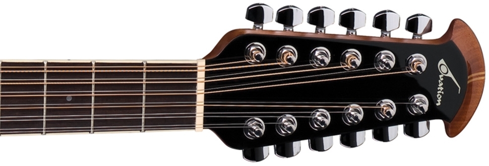 12-струнная гитара имеет шесть основных и шесть добавочных струн. Как следствие, струны крепятся на более широком грифе. Особое внимание уделяется прочности материалов, выбор для 12-струнных гитар останавливается на корпусах джамбо и дредноут.