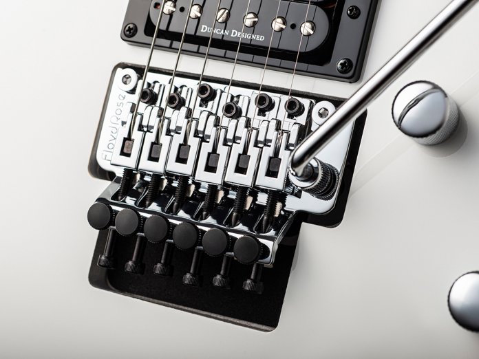 Floyd Rose Locking Tremolo. Первая система была сделана из латуни и не отличалась особой прочностью, поэтому он заказал другую модель, изготовленную из закаленной стали, которая также оснащалась перемычкой и стопорной гайкой.