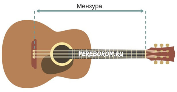 Заметьте, что не всегда гитара, которая внешне выглядит большой, имеет длинную мензуру. Порой небольшая модель может совпасть или чуть уступить рабочей длине. Это зависит от производителя, модели и назначения инструмента.